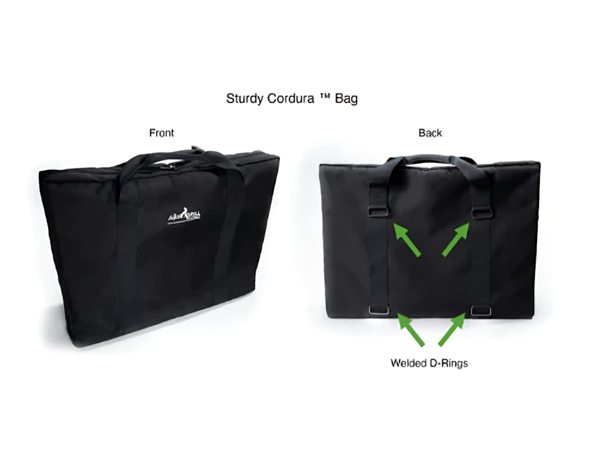 The AdjustaGrill Cordura™ Storage Bag is designed to keep your fire pit and accessories protected, organized, and easy to transport. Made from rugged Cordura™ material, it offers generous storage space while remaining lightweight and water-resistant. Welded D-rings ensure your gear stays securely in place, even during demanding rafting trips or rough handling.